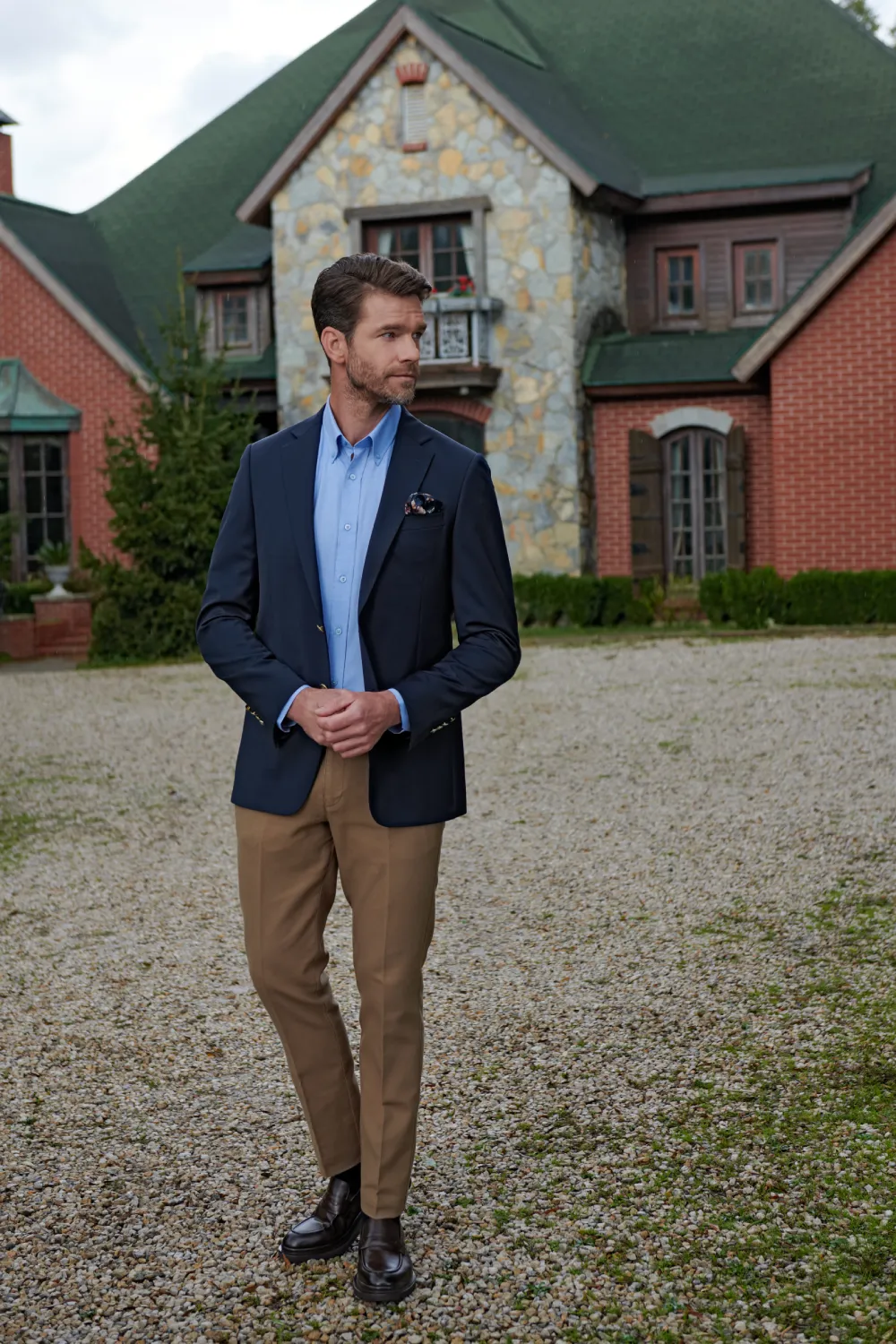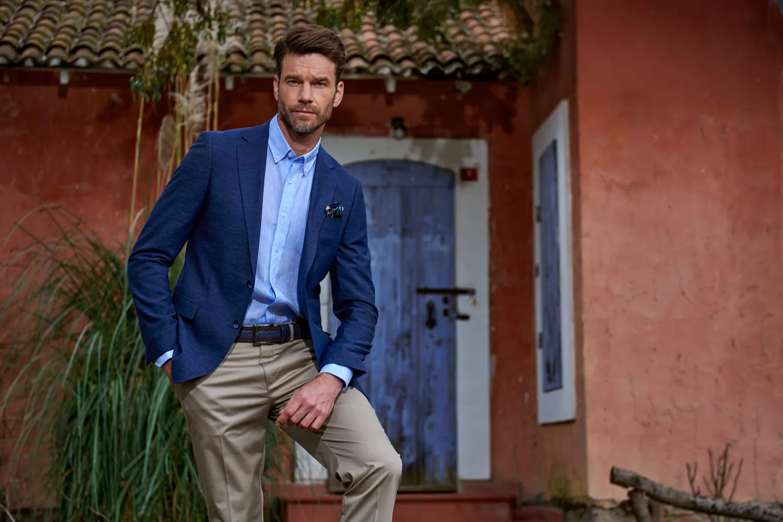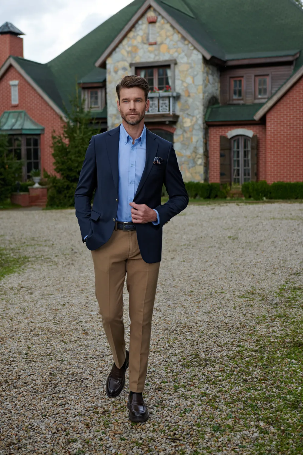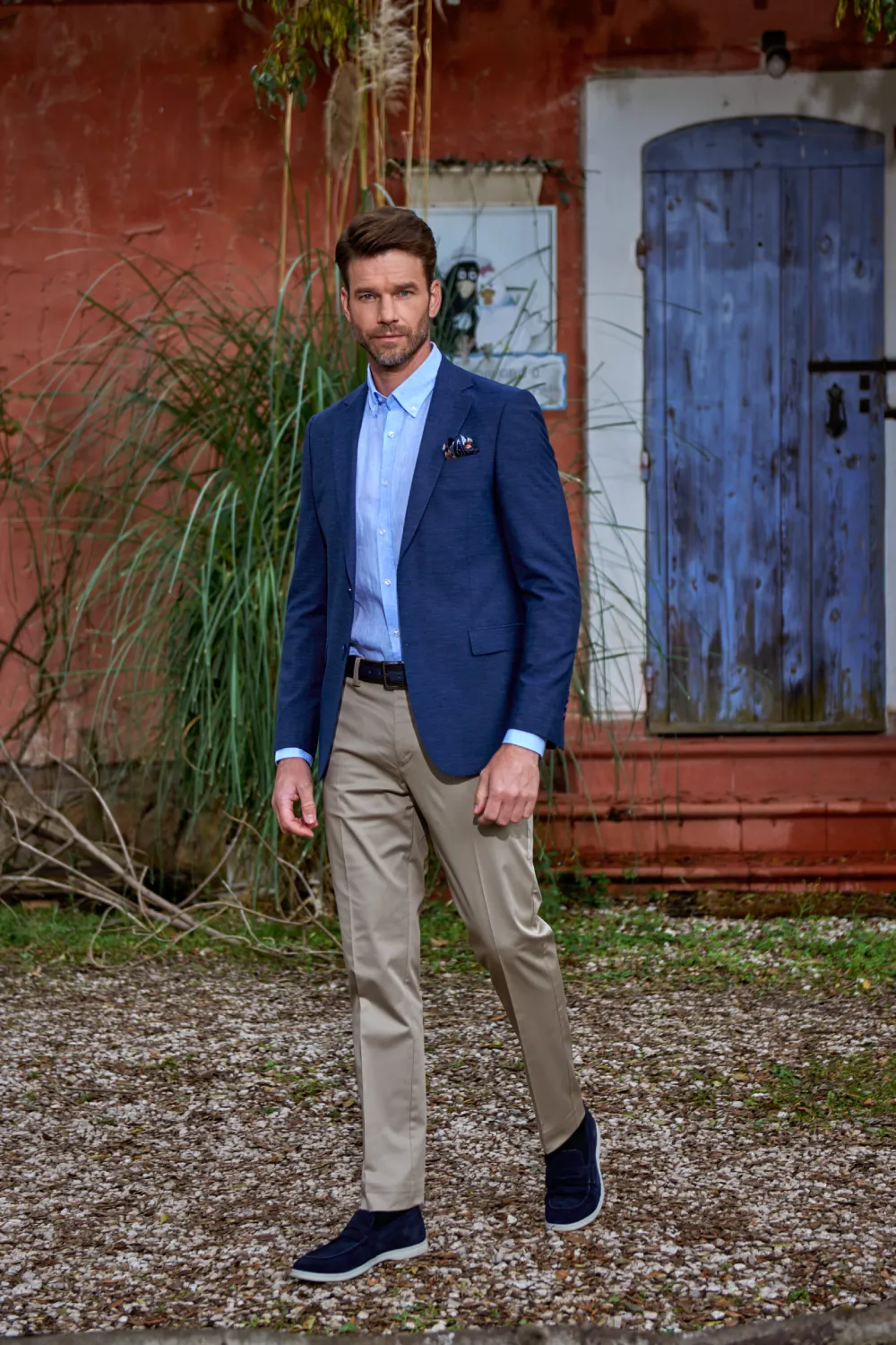 • Blazer ceket: Lacivert ya da koyu mavi. Tok duruş için yün veya yün karışım. Yaz aylarında pamuklu ya da keten karışım da olur (keten hafif kırışır ama doğal bir doku verir).